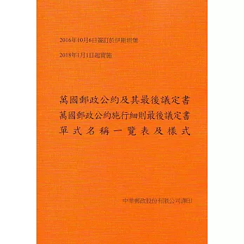博客來好書設計 萬國郵政公約及其最後議定書、萬國郵政公約施行細則最後議定書、單式名稱一覽表及樣式(2016.伊斯坦堡)